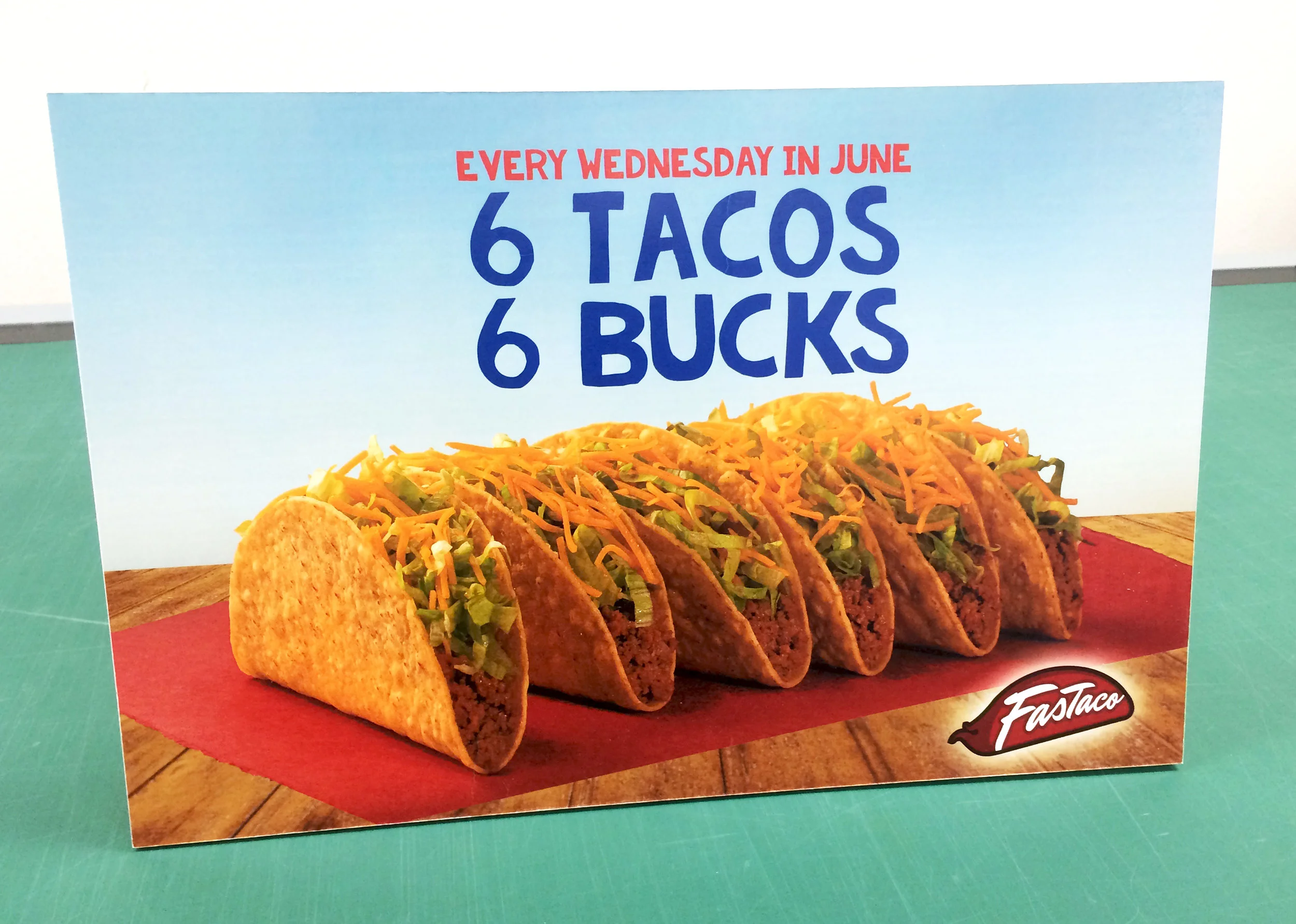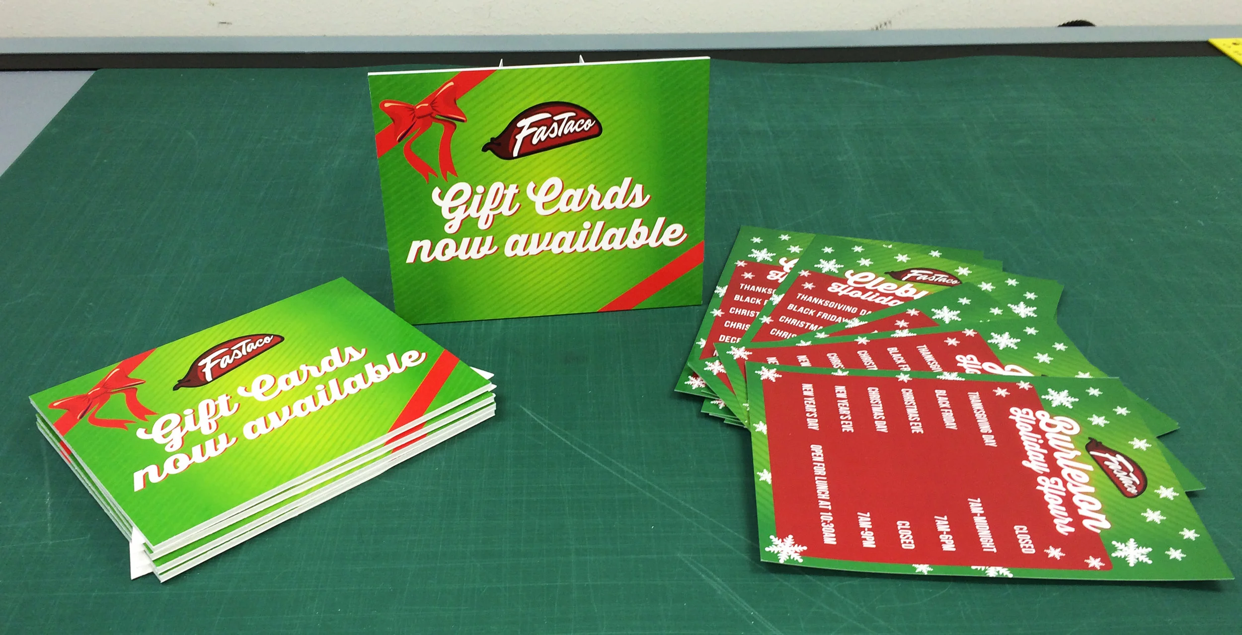 Business cards designed for FasTaco Mexican food restaurants located in North Texas.